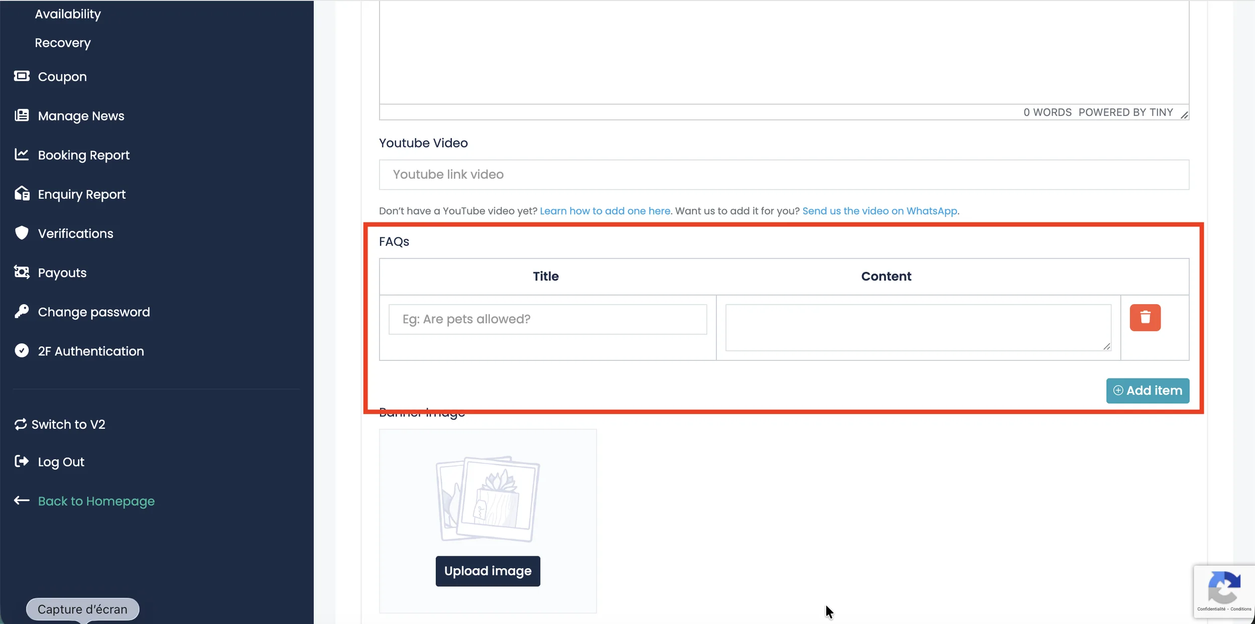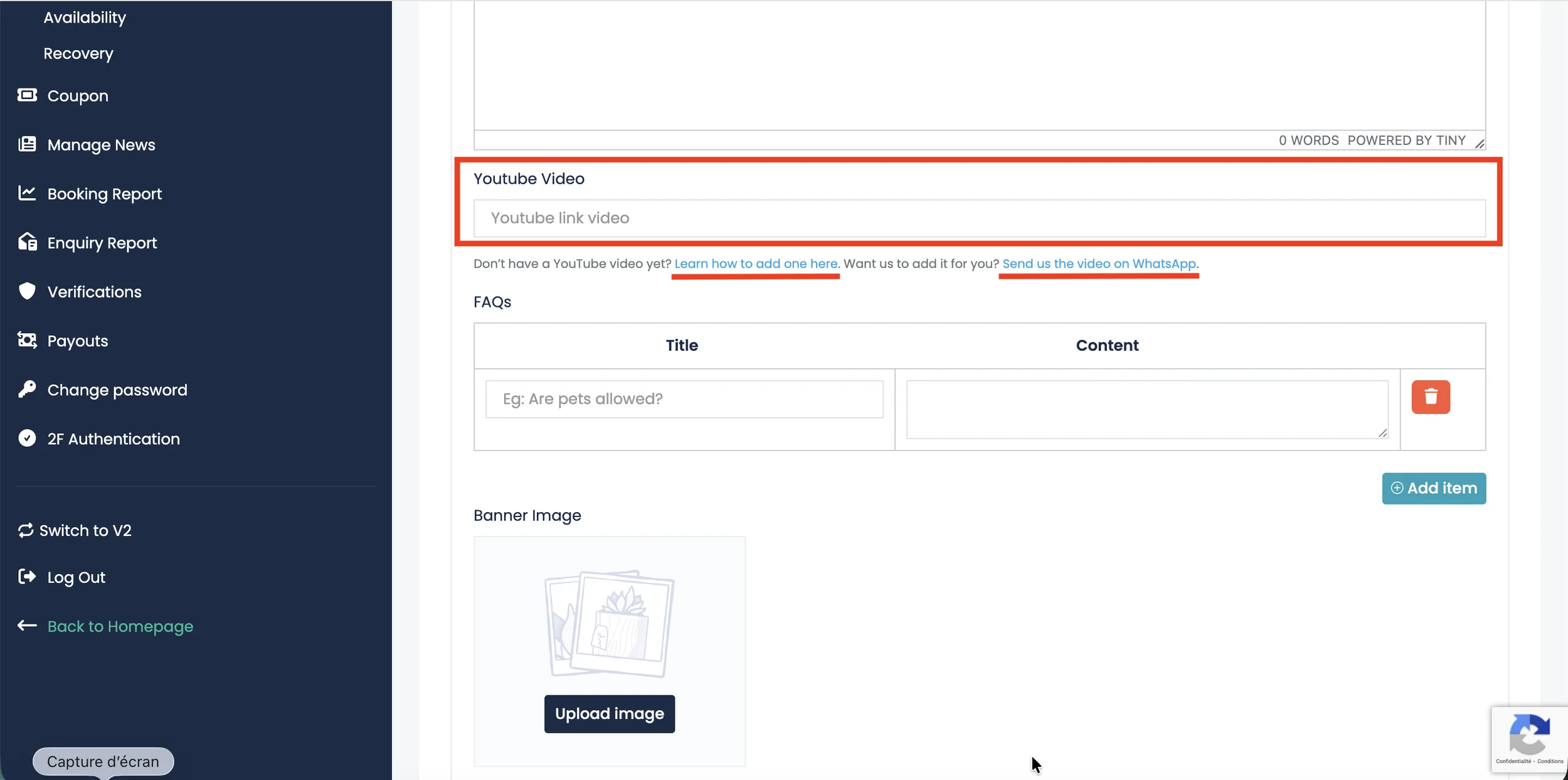 To add a video to your listing, simply paste your YouTube video link into the video input field.