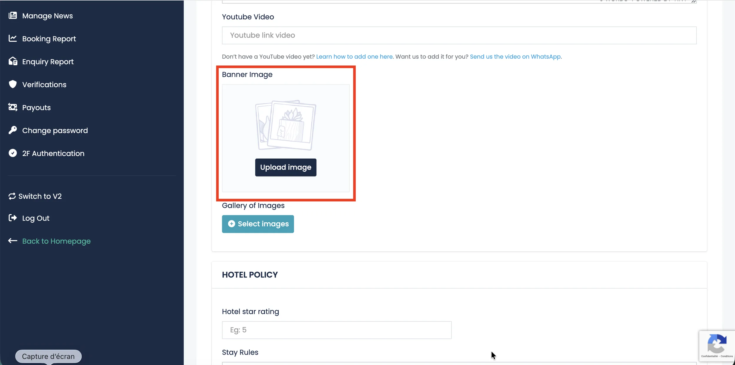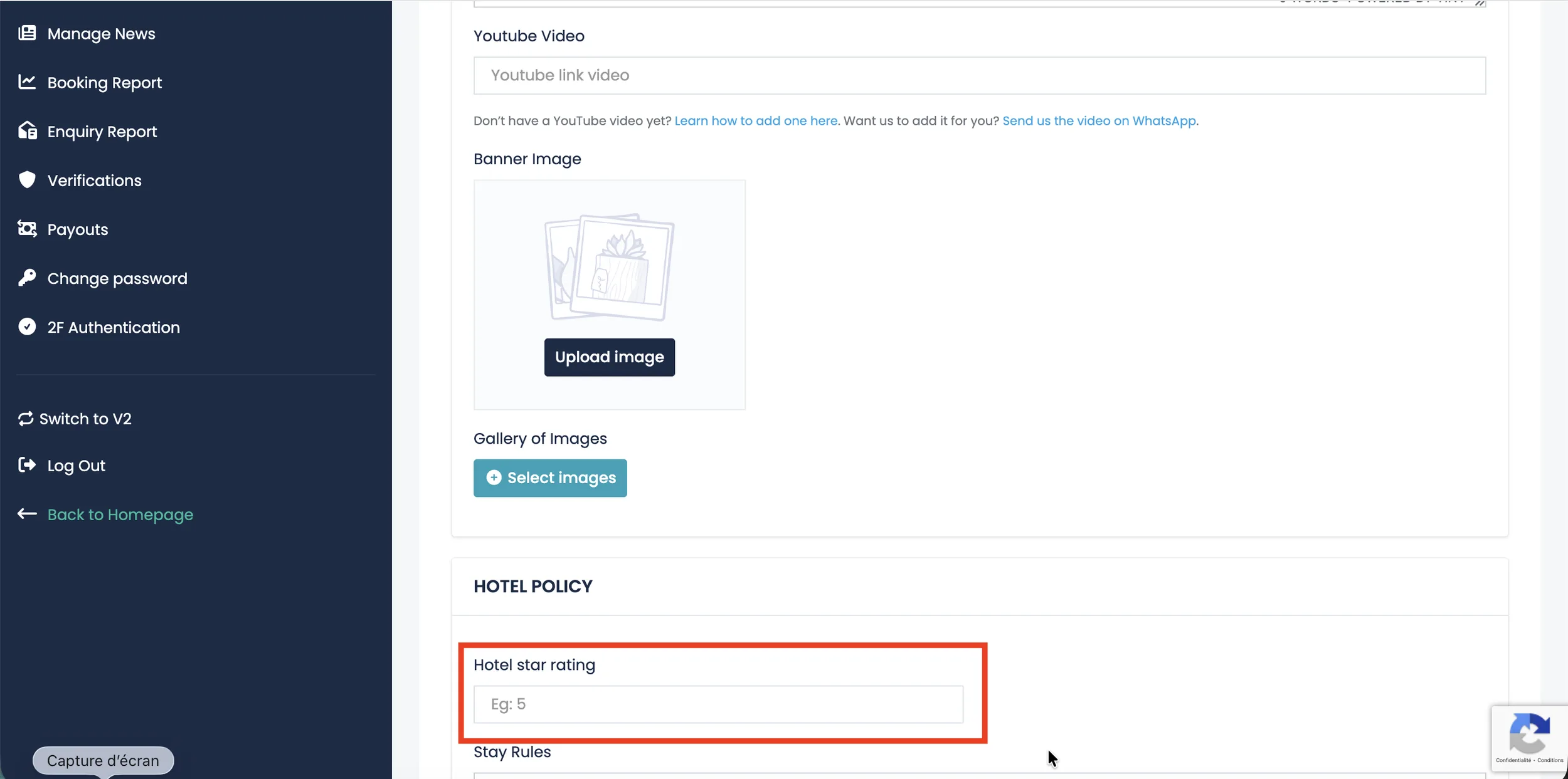 If your property is officially rated, you can enter the number of stars your hotel has received.