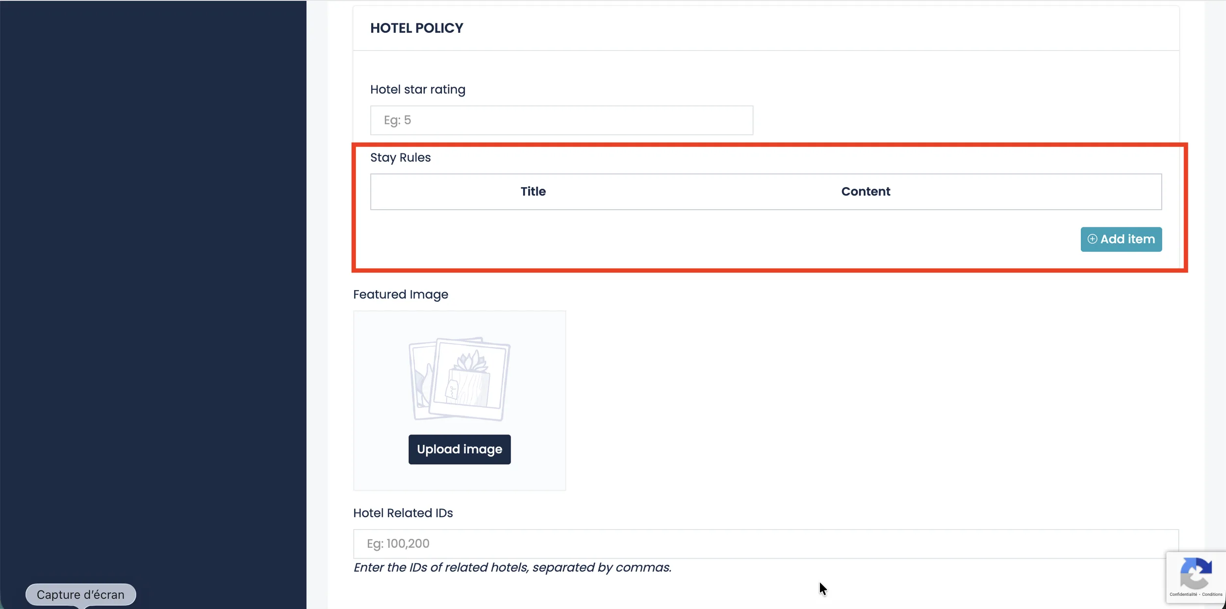 The Hotel Policies or FAQs section allows you to define important rules and information related to your listing.